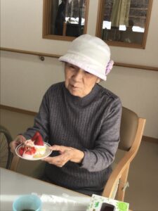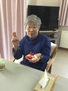 職員手作りひな祭りケーキを皆で美味しく頂きました💗💗💗