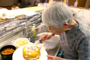 「私達は皮むきをするわ❢」とお姉さま方も協力し、なんともいい香りがしてきました🤤