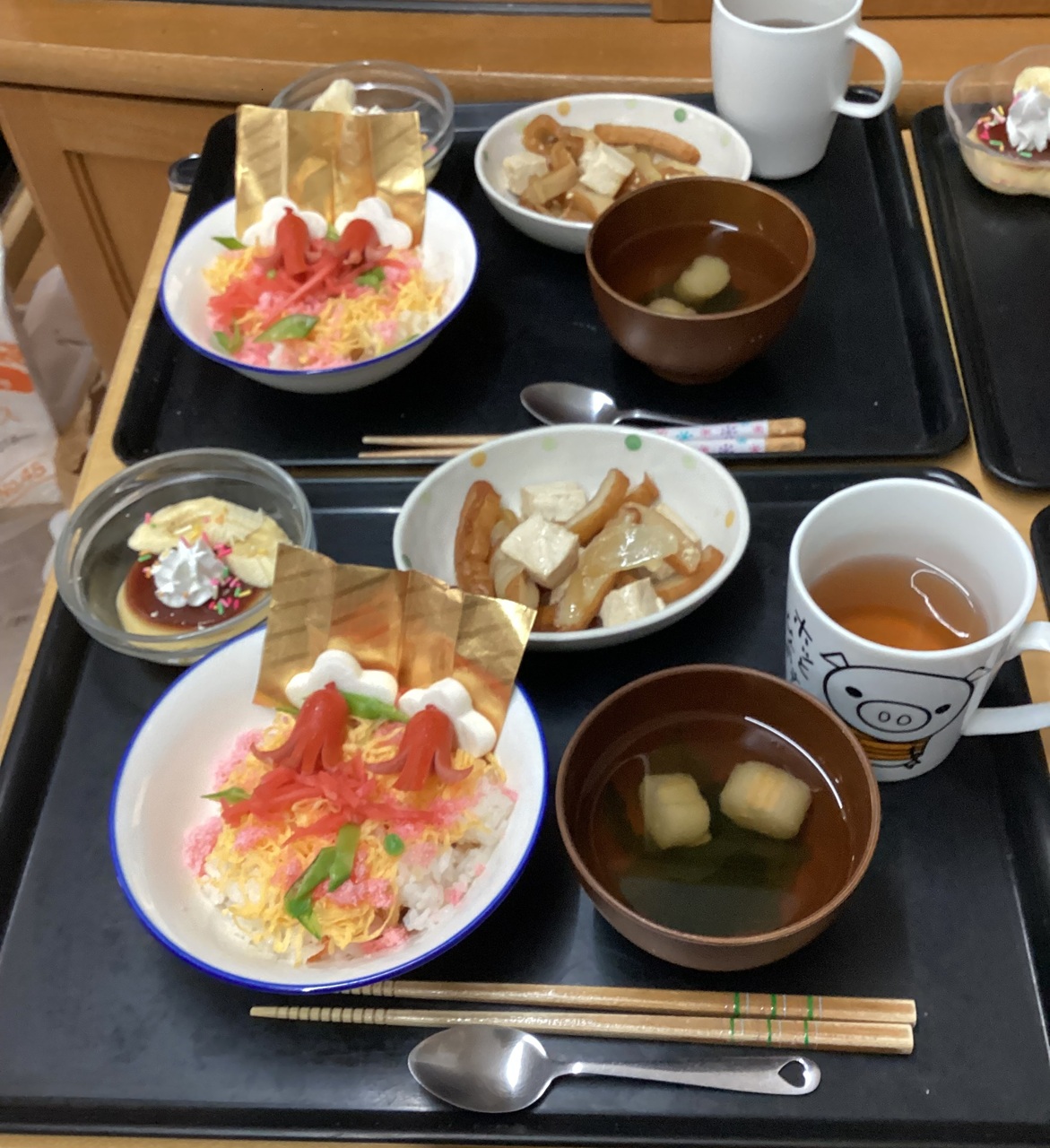 さて、3月3日は両ユニット合同でひな祭りのお祝いをしました。