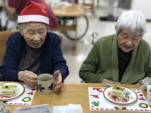 その後に、クリスマスカラー(抹茶)のケーキをいただきました。