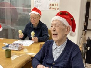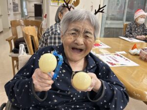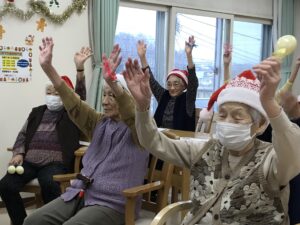 入居者の皆様は、手に楽器をもってスタンバイ。みんなで歌いながら楽器を鳴らし、音楽に合わせて体を動かし、賑やかで楽しい音楽会でした。