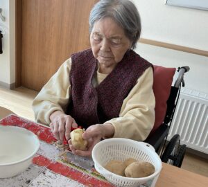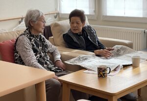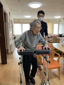 日常の生活では、訪問リハビリで身体状況観察をしてもらい個々に合った介助等の指導を受けています☆ソファーで談笑されたり調理のお手伝いをしていただいたりしながら穏やかに過ごされています😊