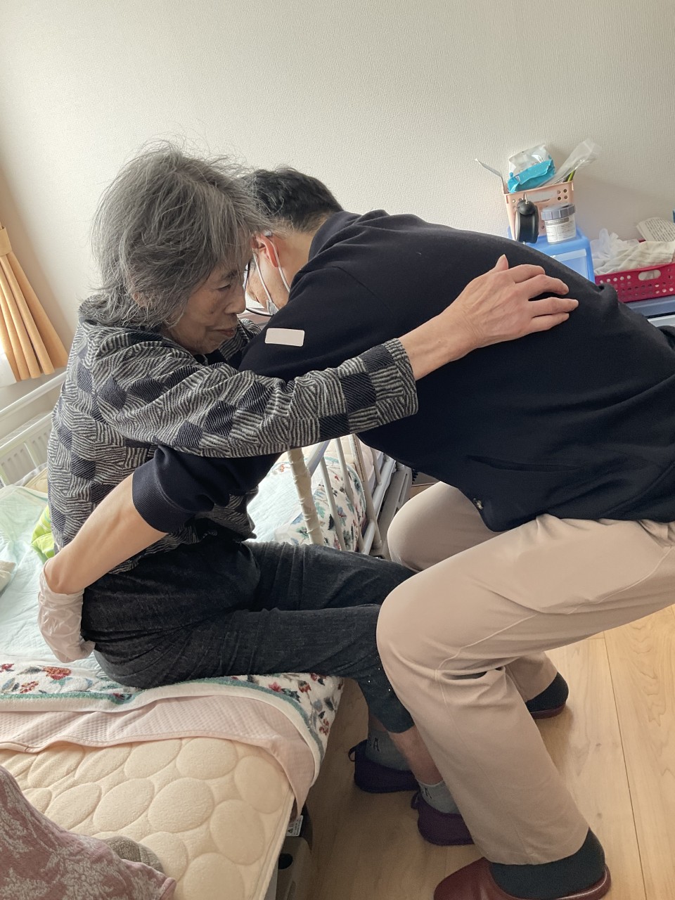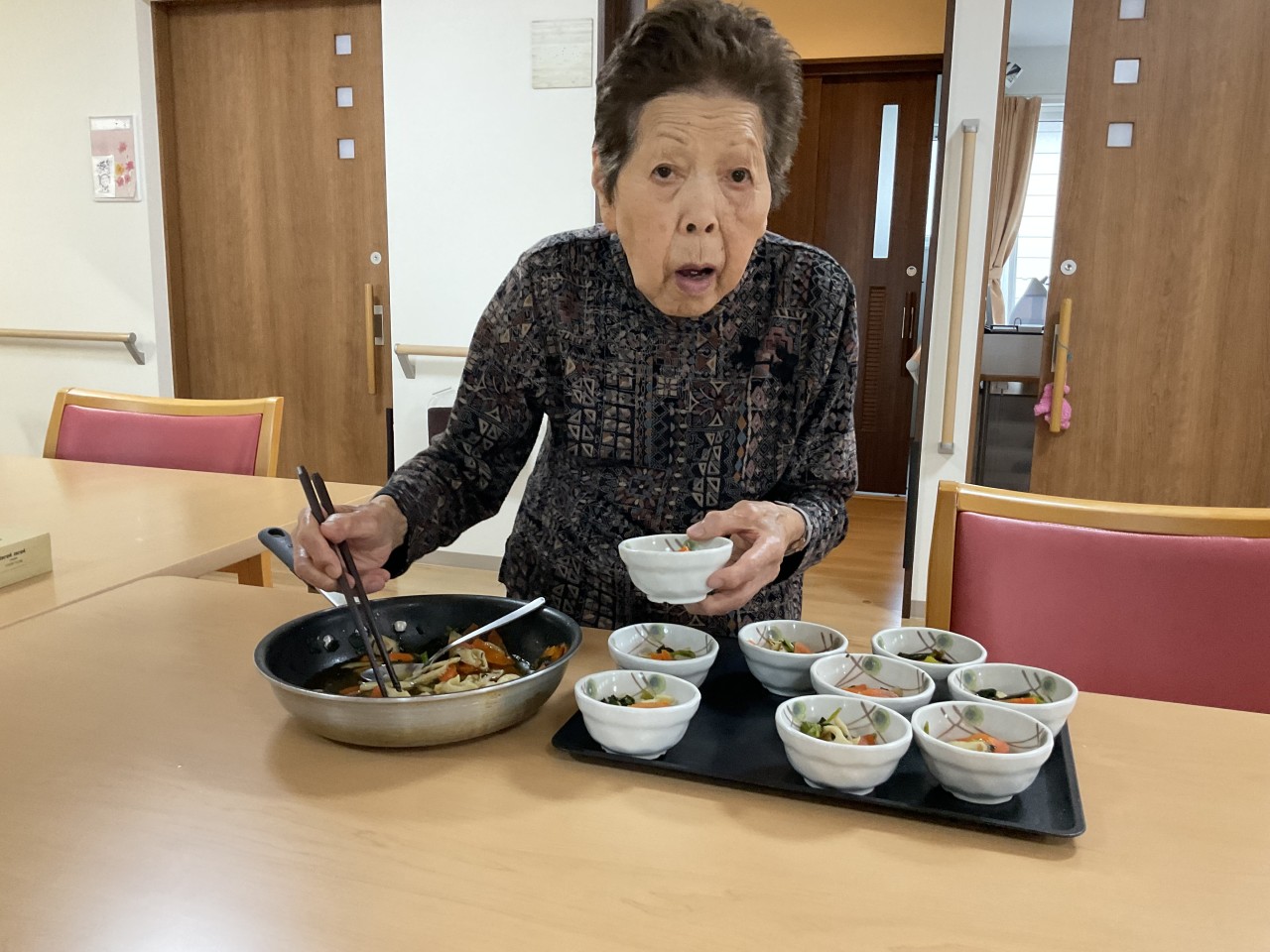 日常の生活では、訪問リハビリで身体状況観察をしてもらい個々に合った介助等の指導を受けています☆ソファーで談笑されたり調理のお手伝いをしていただいたりしながら穏やかに過ごされています😊