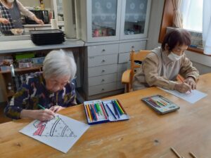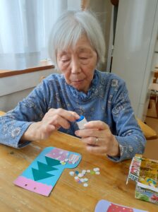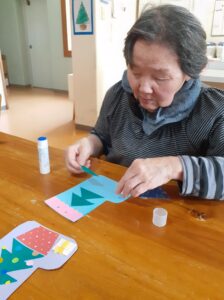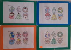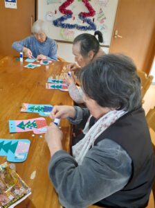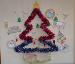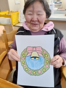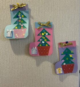 塗り絵や貼り絵で、クリスマスの飾り付けを作りました!
