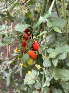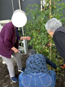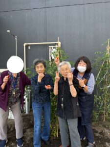 これはジャガイモ🥔 トマトは赤くなったものから入居者様と一緒に収穫し食べてみました🤗