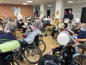 最初はぽつぽつ・・だった景色も、ホールたくさんの入居者様が並んでいることに大変嬉しく思いました😭😭