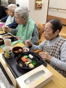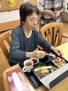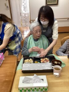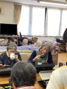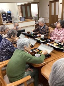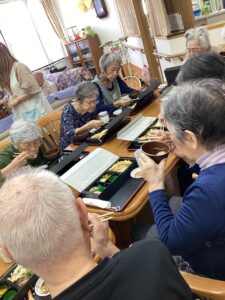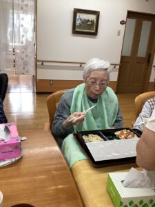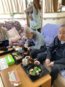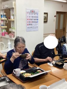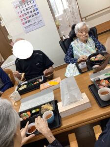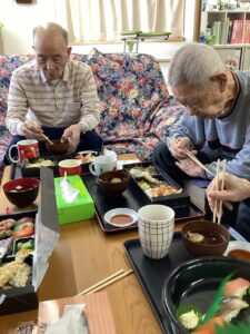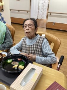 「やっぱりお寿司はおいしいね~」といつもは食の細い入居者様も時間を掛けてペロリと召し上がっていました❣