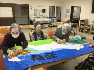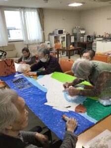 体操後に貼り絵作業をコツコツ進めもう少しで完成というところまできました(*'-')ノ□ペタッ
