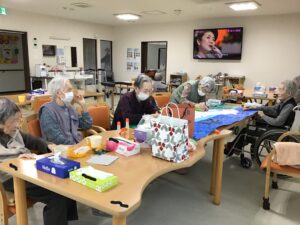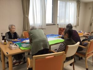 体操後に貼り絵作業をコツコツ進めもう少しで完成というところまできました(*'-')ノ□ペタッ