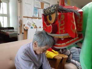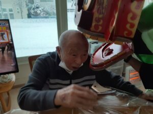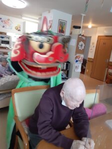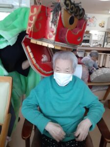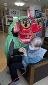 今年も、利用者様の無病息災、厄除けにと、獅子舞を演じさせていただいております。
