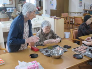 3月に入りひな祭りという事でおひな様を飾って皆で桜餅を作りました(=゚ω゚)ノ