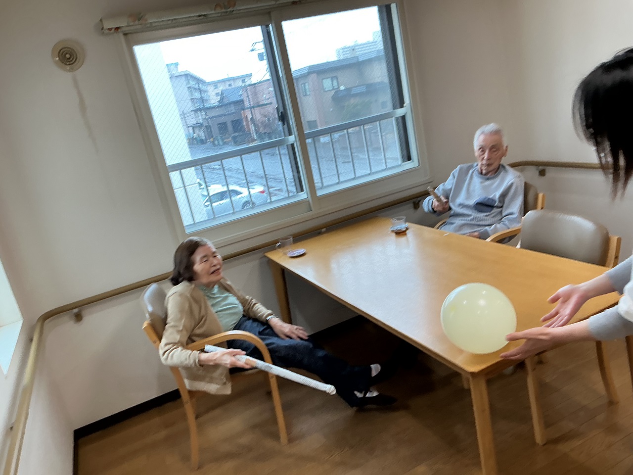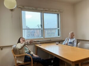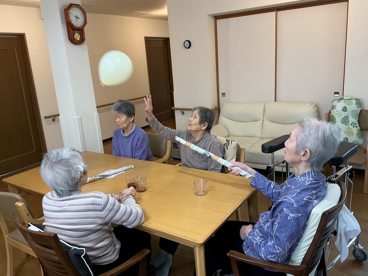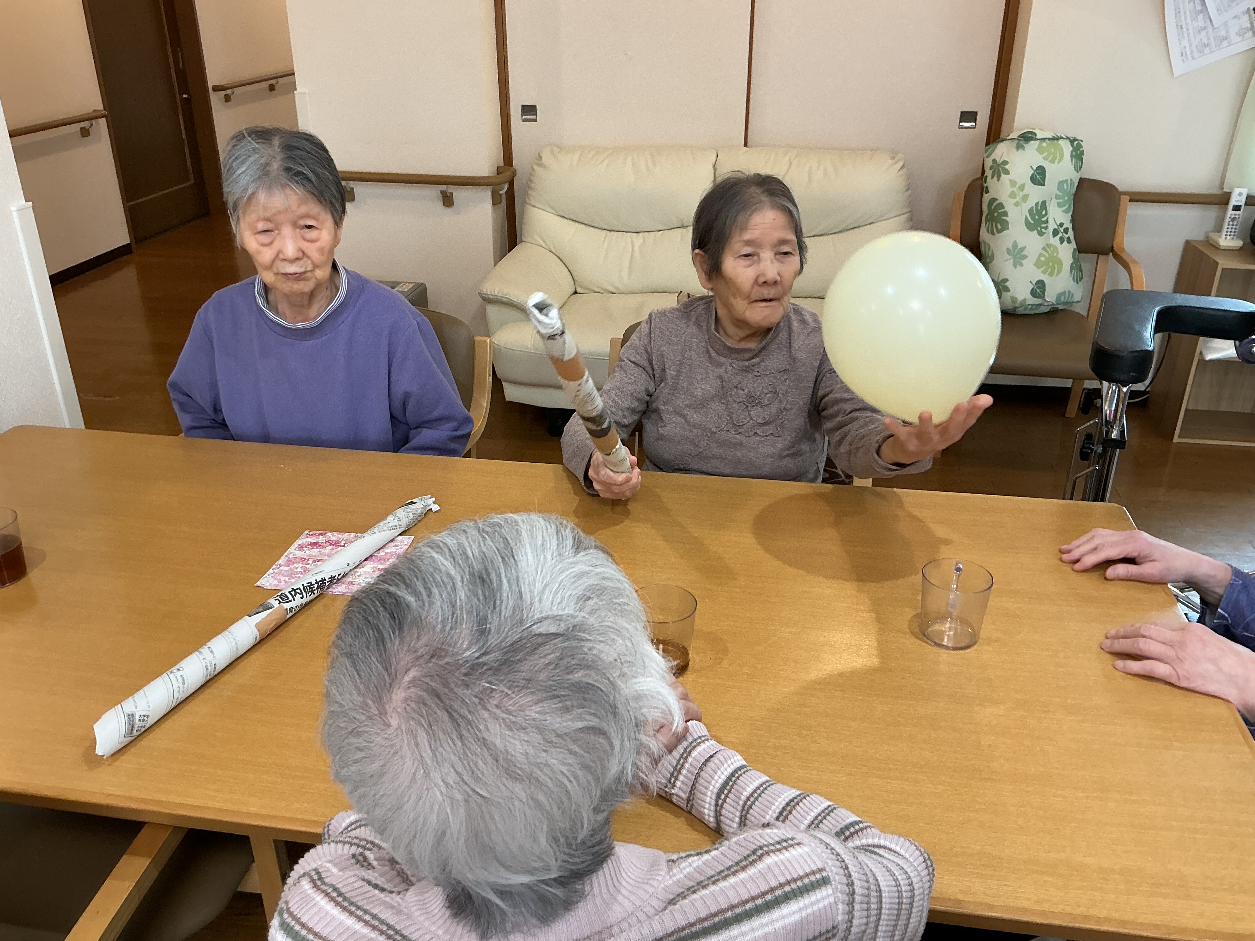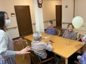 今月は風船バレーをレクでやりました!