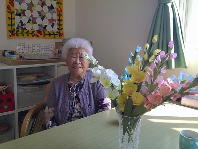室内では、編み物や生け花をして、多趣味を生かしております!!