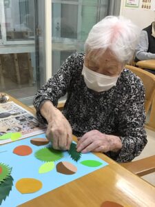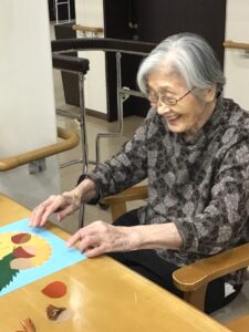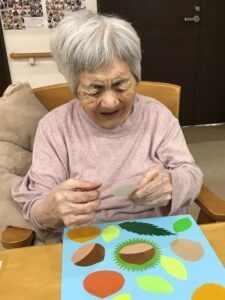 秋の装飾 2025/10/15 【サービス付き高齢者向け住宅 華れん】 10月に入ると最低気温が10℃を下回る日もあり、秋は駆け足で冬に向かっていることを感じます。 今月は、入居者の皆様と秋の壁面装飾を作りました。