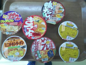 カップ麺は、うどん、そば、ラーメンから選んでいただき