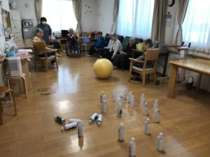 レクでは、豆まきならぬ鬼当て👹