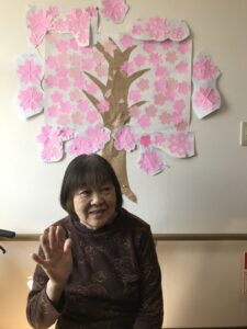 皆様、素敵に軽やかになられました。皆様で制作した桜の下でパチリ。