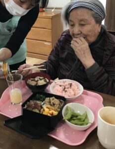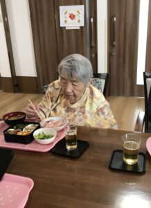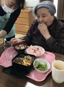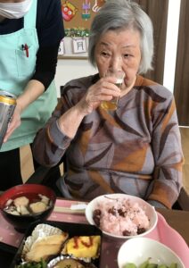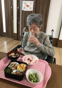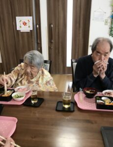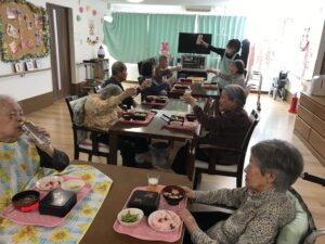 月日の経つのは早いものですね。1月の下旬に月見草では祝い膳を囲む会と称し、
