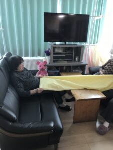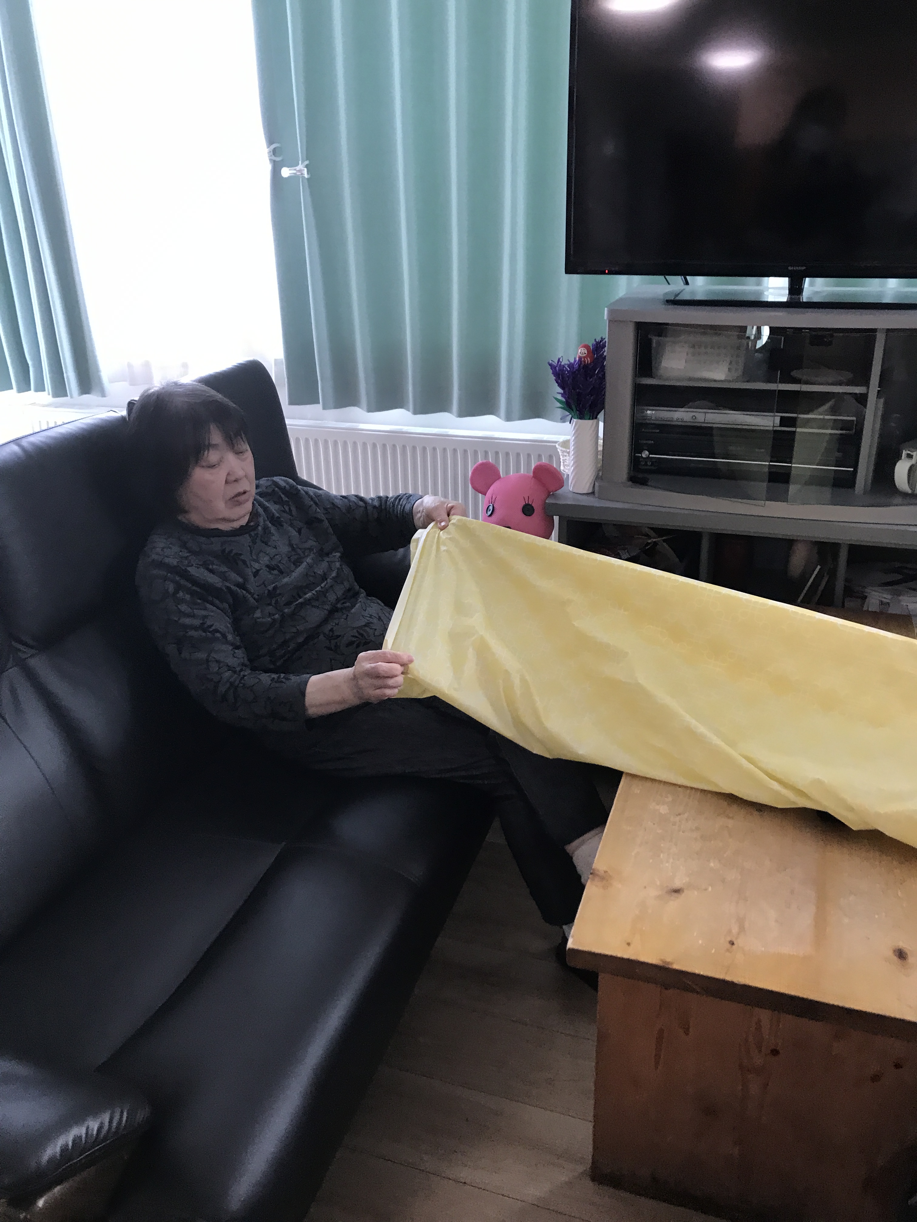 そして、ひな祭りの後片付けの風景です。テーブルクロスを畳んでくださいました。