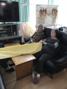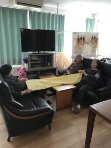まずは、お手玉。『昔は3つでもできたんだけど』と昔を思い出して腕前を披露してくださいました。