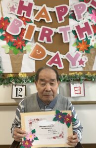 12月14日はKM様のお誕生会でした。手作りのケーキでささやかながらお祝いを致しました。