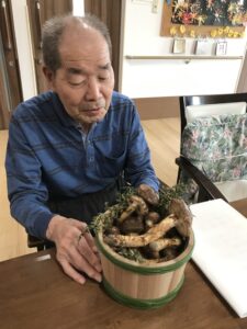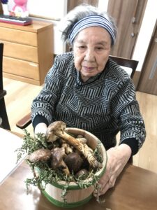 そして、なんと!さくら草の入居者様ご家族様より松茸の差し入れがあり、月見草にもお裾分けを