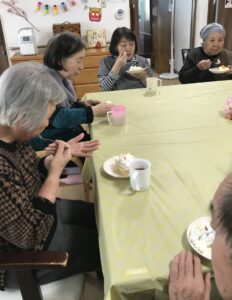 お祝いムードの中、皆さんでケーキを召し上がって頂きました。