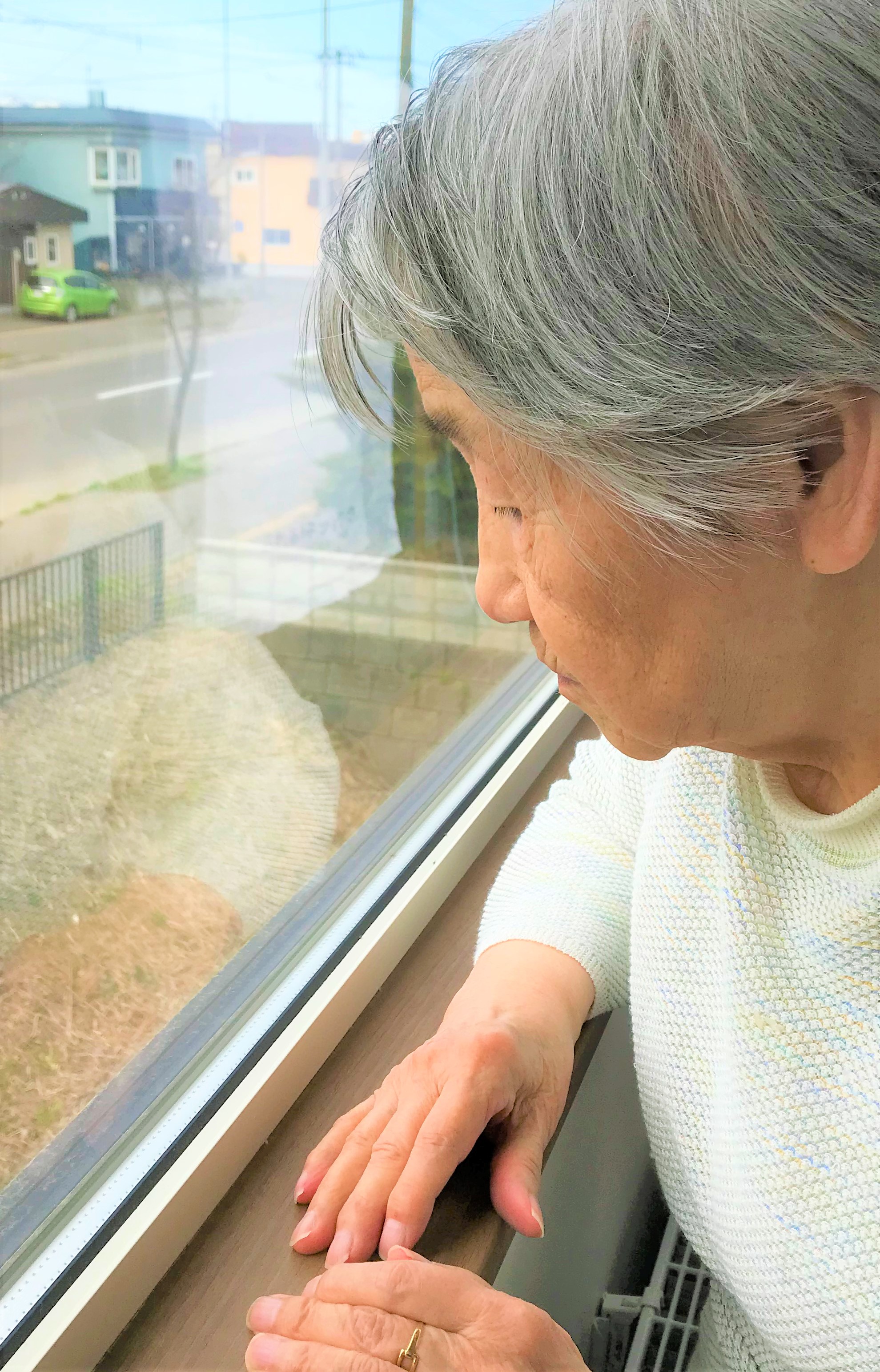 2階の窓から眺める景色は、1階のさくら草と比べると