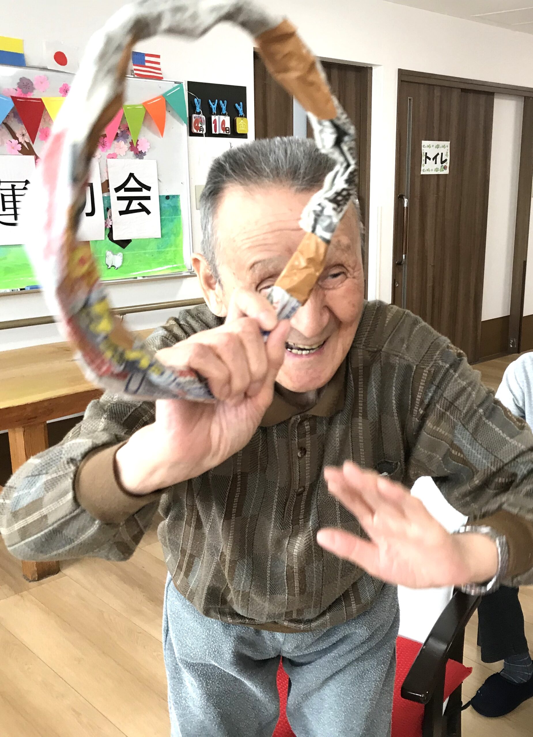 玉入れですがスリッパ飛ばしと間違えてしまったH様(笑)