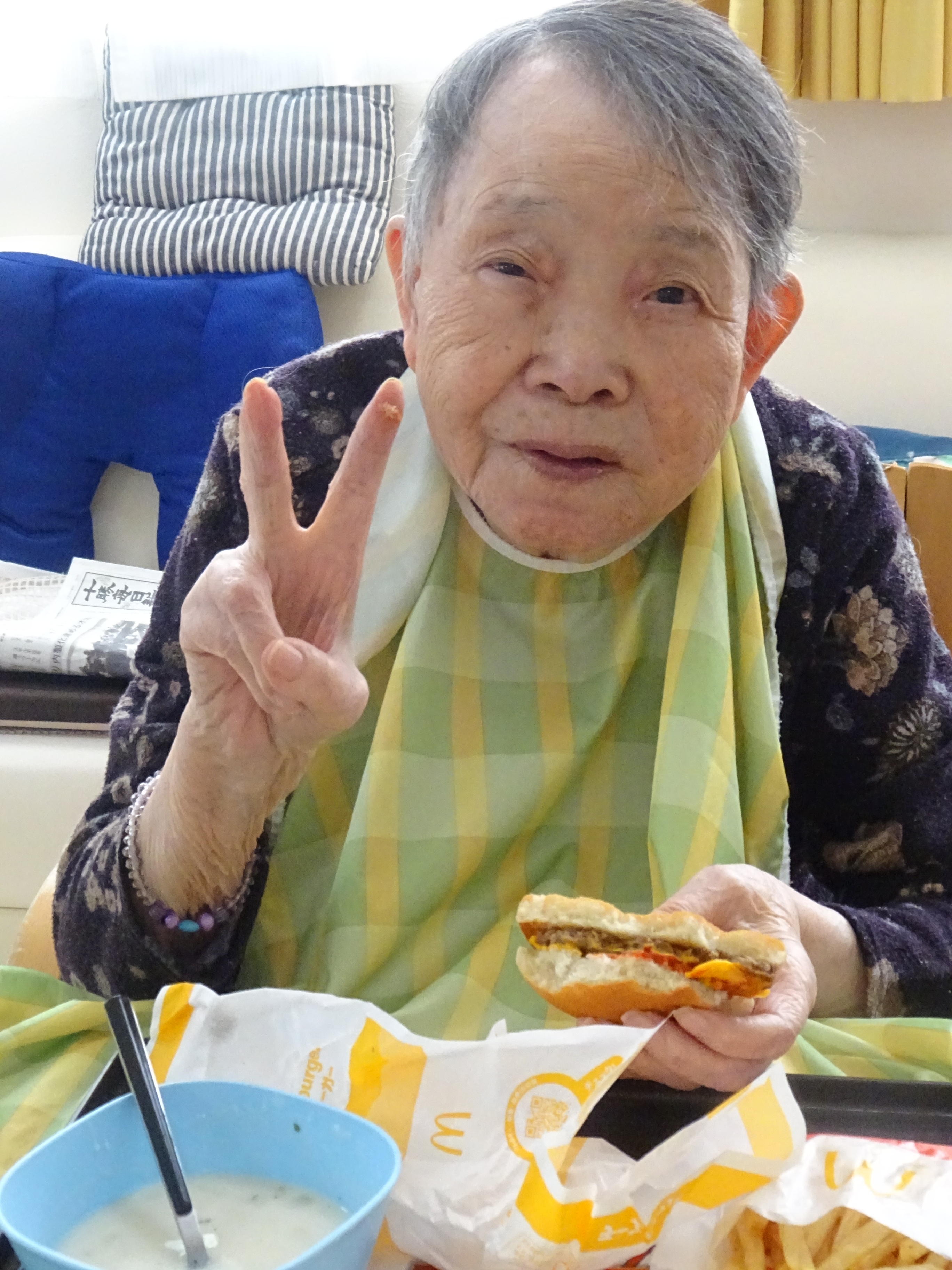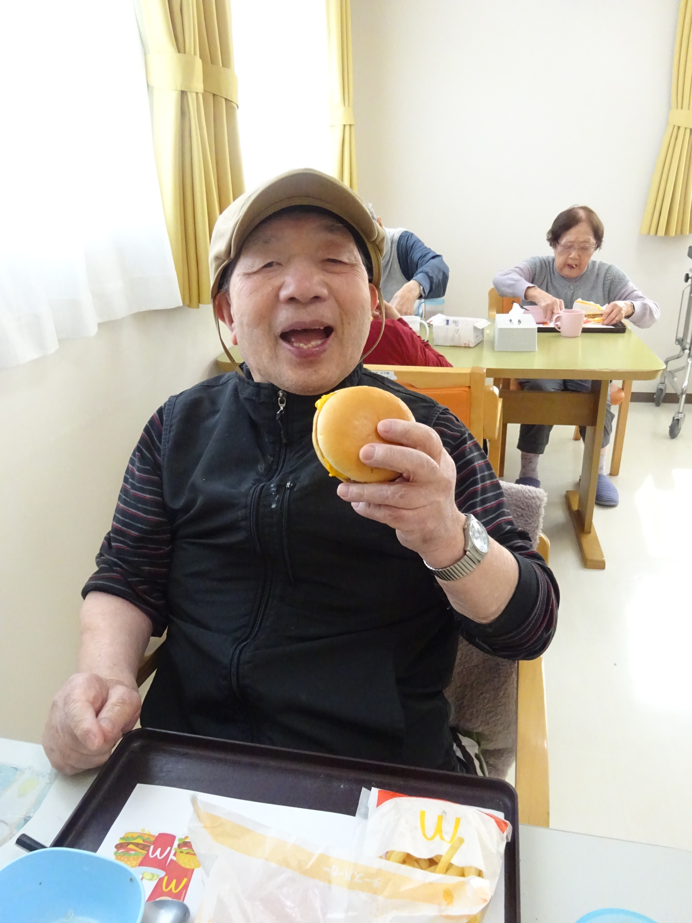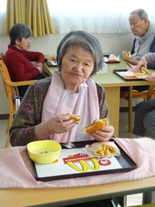 中でも、前回反響の多かったハンバーガーを久々に入居者様に提供しました。🍔🍟