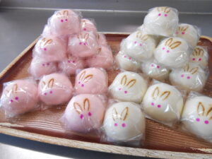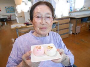 ご家族様より、紅白のうさぎ饅頭の差し入れを頂きました!