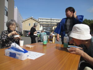 召し上がって頂きました。合間でゲームやみんなで函館名物いか踊り