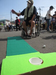 女性軍はダーツに挑戦です。 男性軍、パターゴルフなかなか入りそうで入らない!うーん・・・よいしょっと!