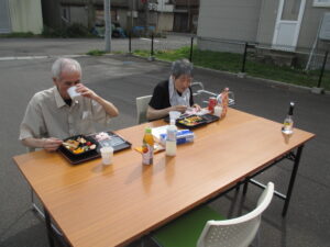 悠厨房職員の手作りお弁当でございます。みなさん、お腹いっぱい召し上がられたようです