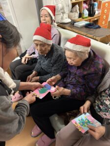 この日のために、2階のみなさんが🧦型のクリスマスカードを作ってくださいました!