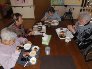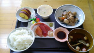 お正月は、刺身やうま煮、茶わん蒸しなど、