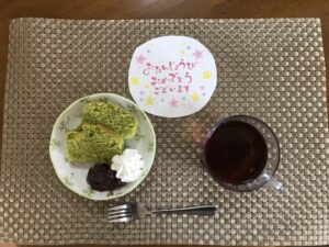 抹茶パウンドケーキでお祝い