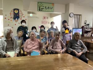 敬老の日のお祝いにとCDも頂いたのでこちらは敬老会で上映し家族様と一緒に見させていただきました。歌とハンドベルの演奏でみなさん嬉しそうに見ていました。