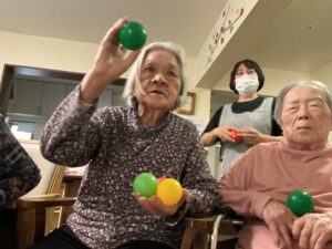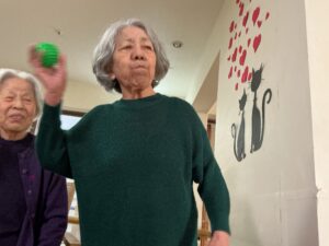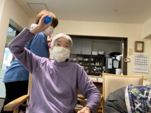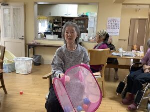 2階は特定技能外国人の職員が鬼を書いてくれそれに向かって「鬼は~外!」と投げた後に職員に向かって「福は~内!」と投げていました。