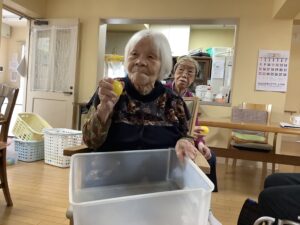 中々鬼の顔が落ちずみなさんすごい力で何回も何回も投げていました。