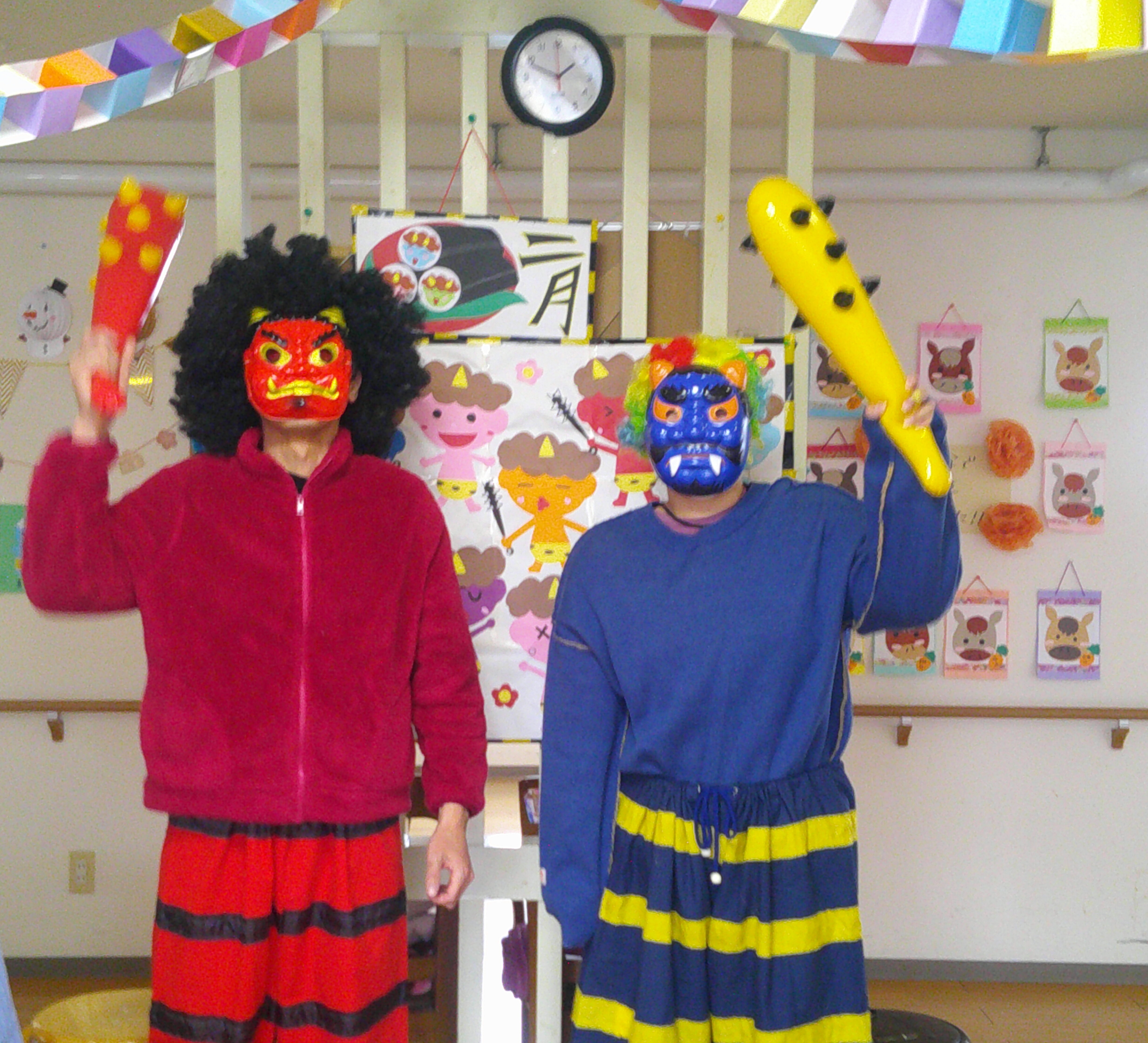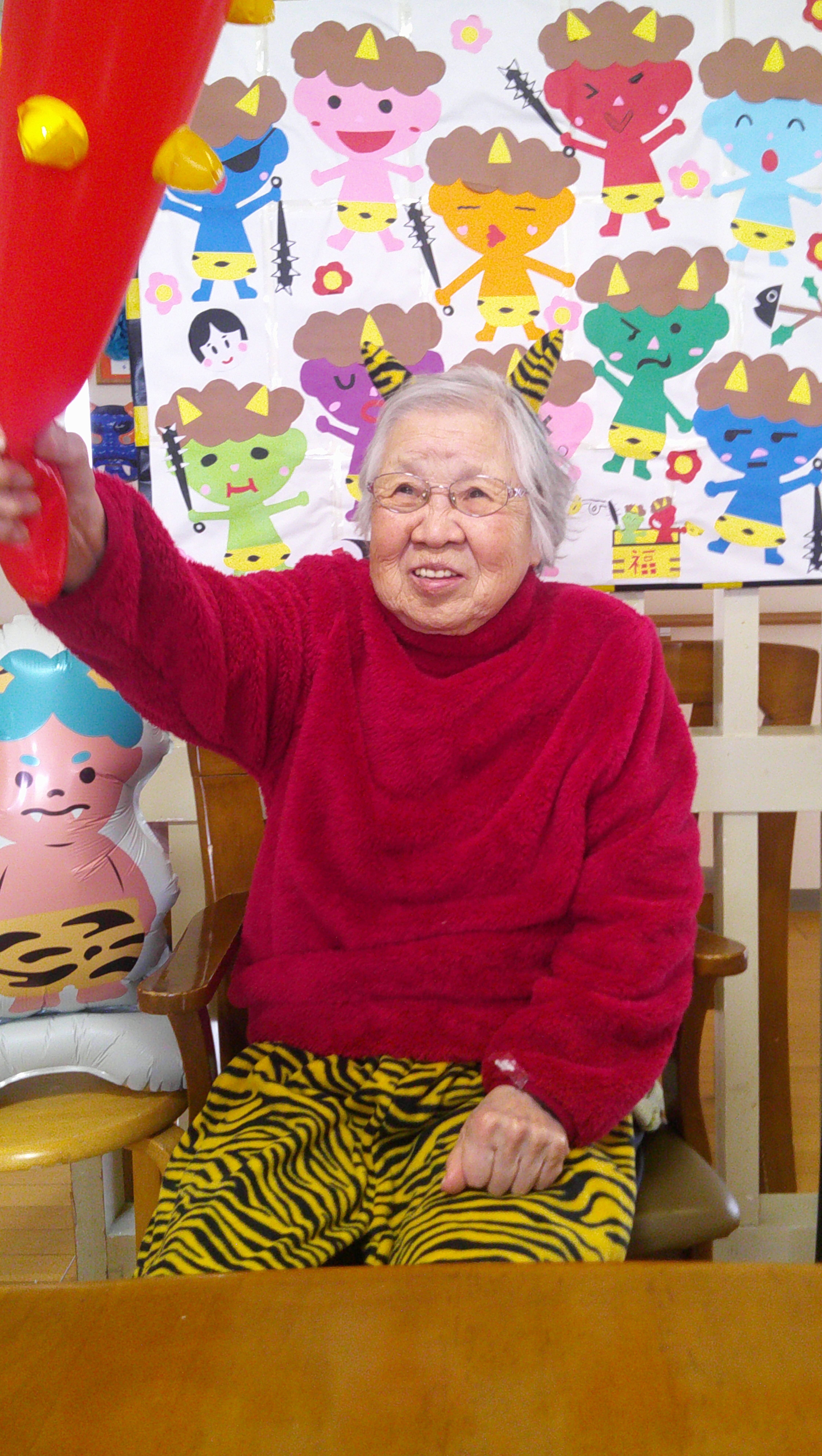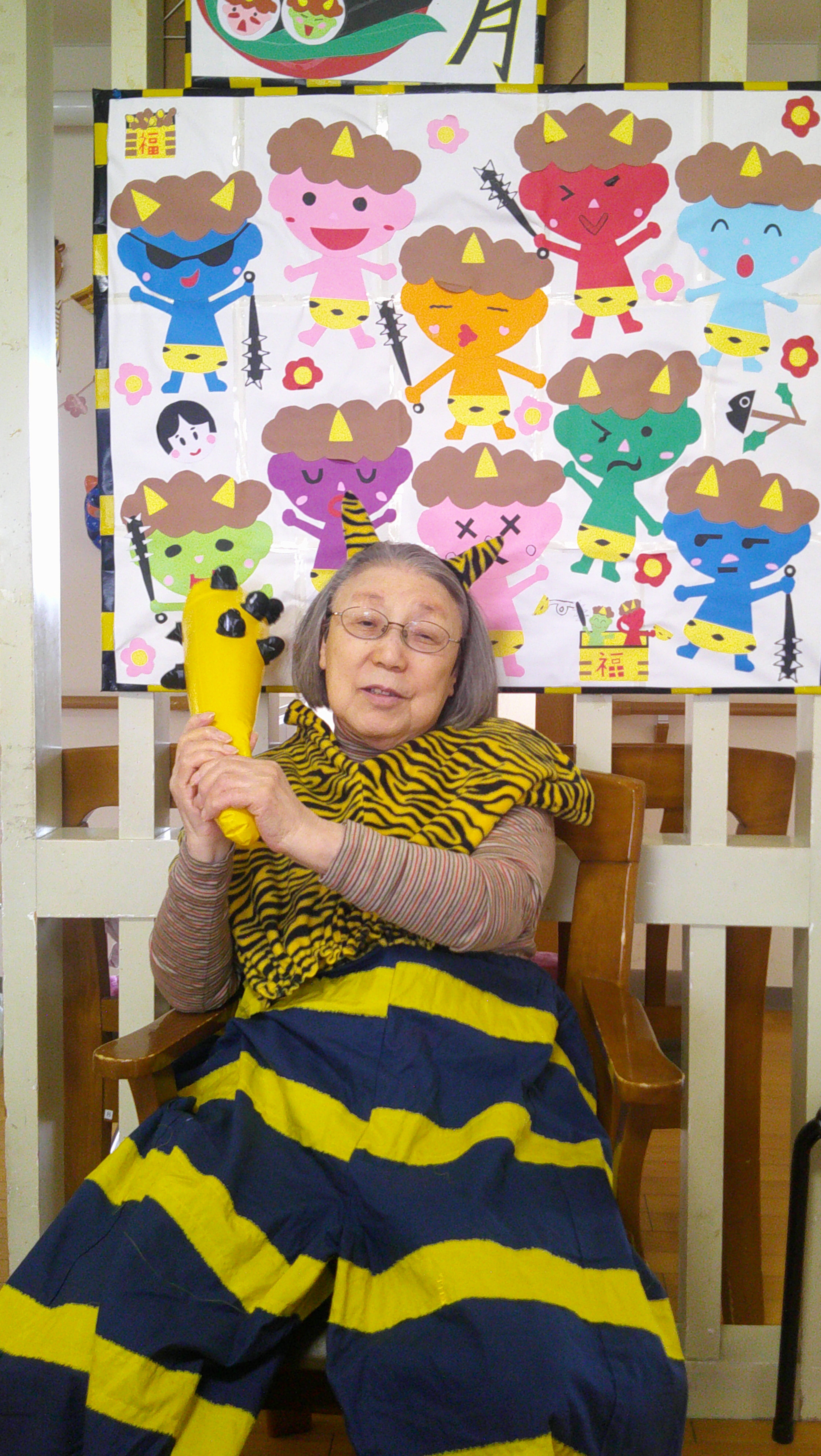 👹節分 2026/02/18 【グループホームまごころの贈り物】 今月は、2階の節分のご様子を紹介いたします。 今年は、赤鬼と青鬼がやって来ました。 鬼から金棒を取り上げ鬼退治(笑) その後は、皆さんも鬼の衣装で記念撮影 福が来ますように🙏 最後は、鬼のケーキを食べて大満足😄