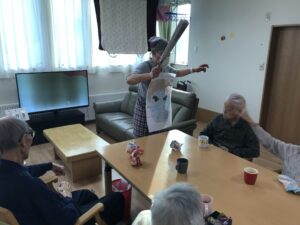 フロアには👹が登場して皆さん鬼に向かって投げています。