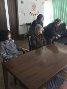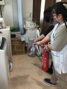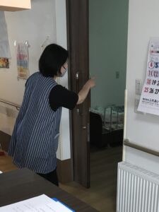 本来は外への避難ですが、冬は一部の入居様にご協力していただき