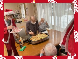 サンタさんが張りきって昼食にお好み焼きを作りました🍳