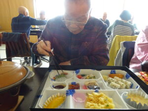ナウマン温泉では、町内会の方々との語らいを楽しまれ、お弁当を共に食べました。