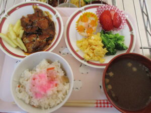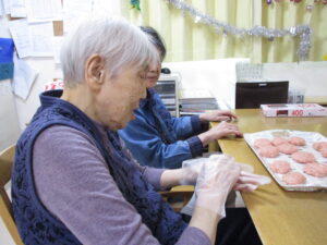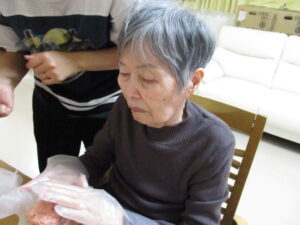 クリスマス食としてハンバーグを皆さんでこねこねとして頂きました(⌒∇⌒)