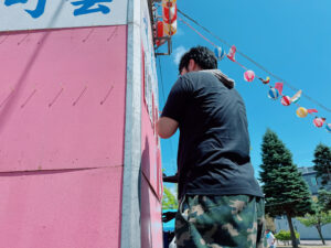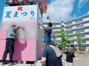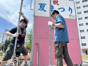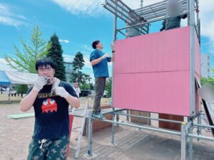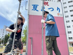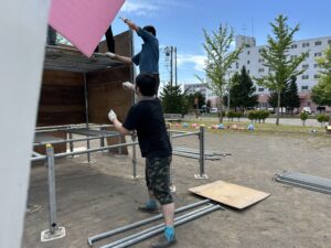 グースの職員と花園町会の皆様でやぐらを建てました😊