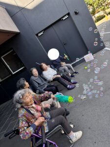 普段のレクリエーションとして藍華前に出てシャボン玉兼陽の光を浴び外へ行きました🫧
