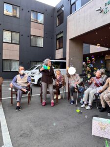普段のレクリエーションとして藍華前に出てシャボン玉兼陽の光を浴び外へ行きました🫧