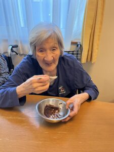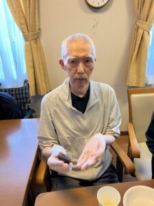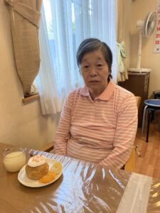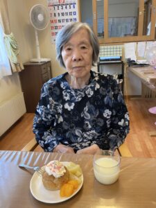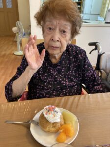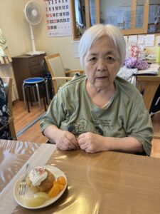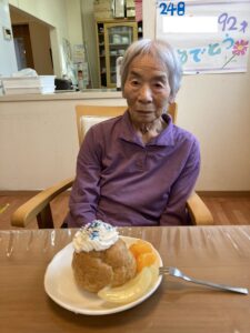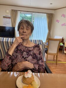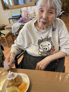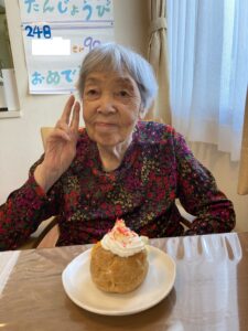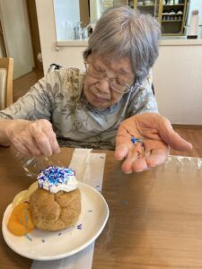 お誕生日会です。ご自身でデコレーションされたシュークリームでお祝いしました。